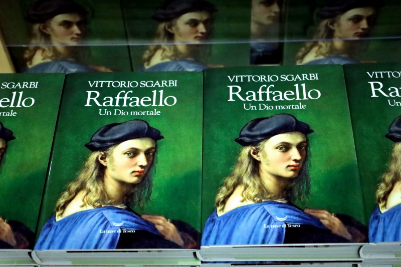 “Raffaello ha solo dipinto. Non è stato un uomo complesso come Leonardo, un pensatore curioso di tutto; non è stato come Caravaggio, un ‘maledetto’ che vive una vita piena di contrasti; non è stato un artista come Michelangelo, pittore, scultore, poeta, architetto. Raffaello ha dipinto soltanto. E ogni volta ha inventato un capolavoro. I pittori, come il suo maestro Perugino, tendono a ripetersi, a riprodurre un modello, hanno un archetipo di riferimento. Lui no. Ogni volta inventa un’immagine nuova. Opere che la critica disconosce sono di Raffaello: sono opere diverse da quelle che ci aspettiamo, perché Raffaello non è solo Raffaello, è anche Giorgione, è Caravaggio, è Michelangelo, è Parmigianino. Lui è tutto: nessuno è ‘più tutto’ di lui. Quello che ha fatto Raffaello è un prolungamento della creazione di Dio e della bellezza del mondo, una bellezza assoluta, senza limiti.” Seguendo il racconto di Giorgio Vasari, Vittorio Sgarbi compone il suo racconto di Raffaello, dal commovente rapporto con il padre e la madre, al magistero di Pietro Perugino, dagli affreschi delle Stanze Vaticane fino al torbido amore per la Fornarina che destabilizzò la sua calma olimpica. E ogni volta Vittorio Sgarbi percorre la fitta rete di legami con i pittori del suo tempo: l’ammirazione per Leonardo, il rapporto contrastato con Michelangelo, l’amicizia con Bramante.