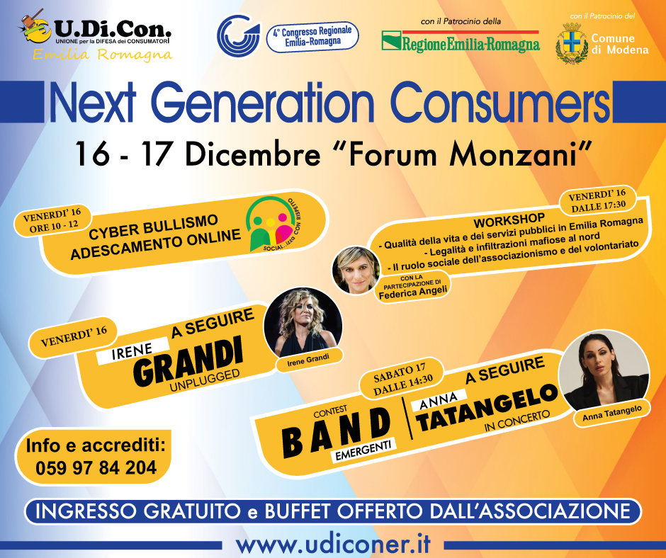 Il 16 e il 17 Dicembre si terrà il IV congresso regionale di U.Di.Con Emilia Romagna.