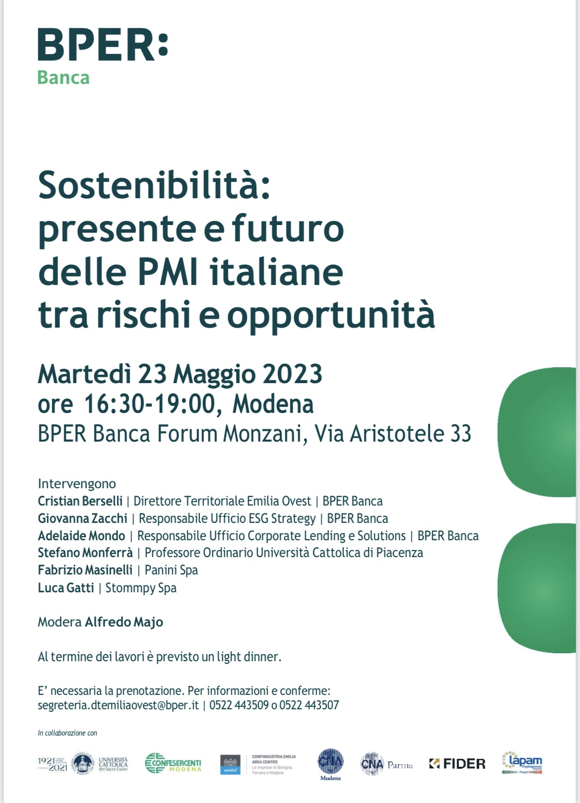 Per informazioni e conferme: segreteria.dtemiliaovest@bper.it | 0522 443509 o 0522 443507