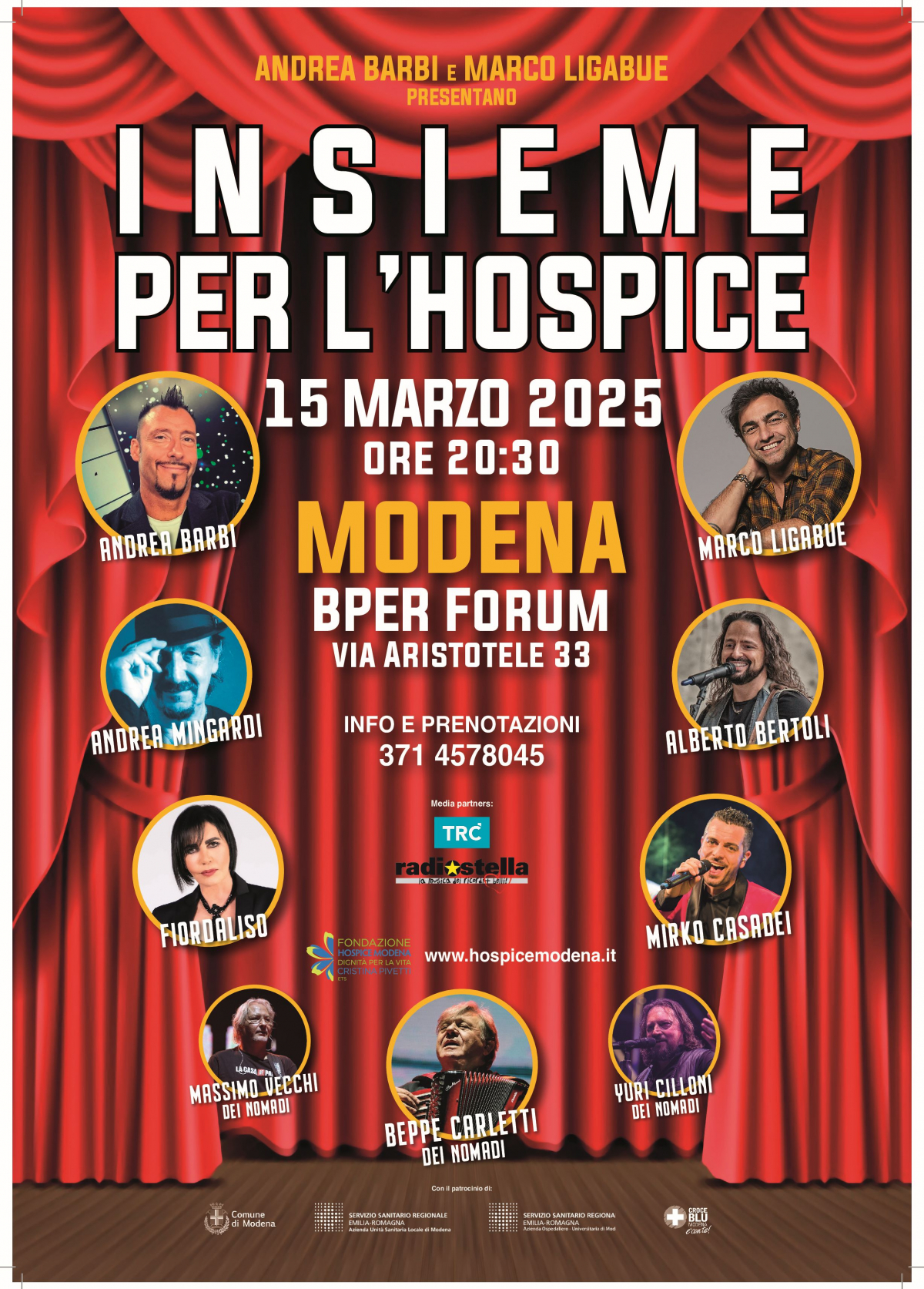 Durante la serata si esibiranno gli amici Mirko Casadei, Fiordaliso, Massimo Vecchi, Yuri Cilloni e Beppe Carletti dei Nomadi, offrendo al pubblico uno spettacolo coinvolgente, ricco di canzoni e aneddoti che faranno sorridere, riflettere e celebrare il coraggio di affrontare la vita con positività e ironia. Questo approccio schietto e ottimista accomuna gli intenti di Hospice Modena, BPER Banca, Radio Stella e TRC, creando un parallelismo con la poetica dello spettacolo: una “cronaca spettinata del rock”, perché pensare fuori dagli schemi e guardare al futuro con speranza è davvero un atto rivoluzionario, soprattutto quando si parla di impegno e solidarietà.
