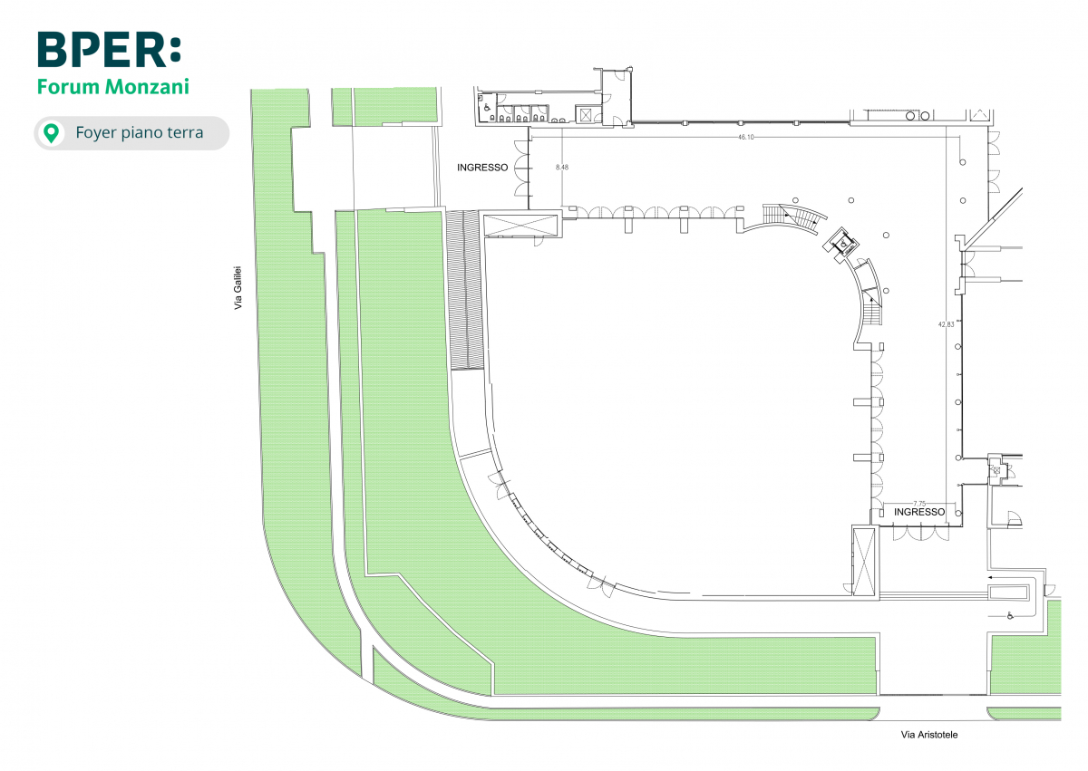 Reception dotata di desk per accoglienza con accesso ad Internet. Per l’allestimento di stand espositivi, il Foyer è dotato di un punto di allacciamento elettrico ogni 5 metri.